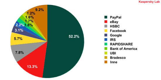Odsetek wiadomości phishingowych w pierwszym kwartale 2010 roku wynosił średnio 0,57% ruchu pocztowego.