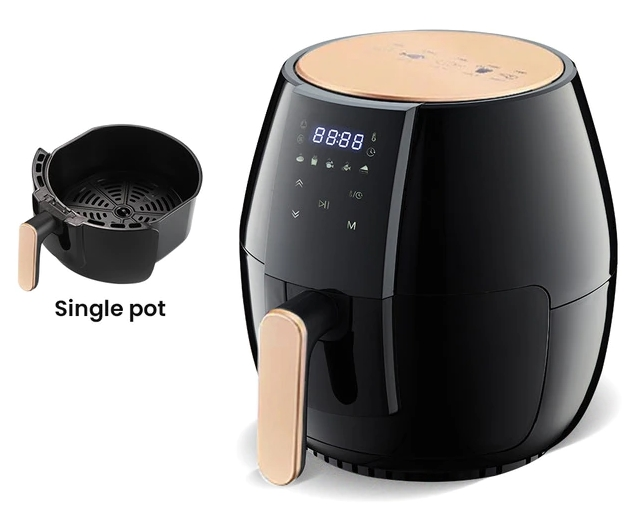 To propozycja dla miłośników smażonego jedzenia, którzy chcą ograniczyć tłuszcz. Producent gwarantuje zmniejszenie zużycie tłuszczu do 85% bez utraty smaku i chrupkości, dzięki technologii 360 stopniowej cyrkulacji powietrza. Urządzenie jest wyposażone w 8 ustawień trybu pieczenia, co umożliwia przygotowanie w nim potraw takich jak np. frytki, ciasto lub mięso. Pojemnik do pieczenia jest pokryty teflonową powłoką, mieści do 2,6 litra, łatwo się wyciąga i można go myć w zmywarce. Frytkownica jest poręczna, niewielka, a dzięki oryginalnemu wyglądowi i dotykowemu panelowi sterowania wpasuje się w każdą kuchnię.