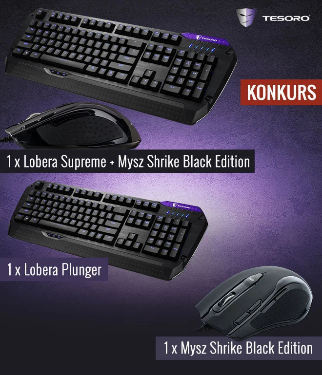 Wśród uczestników zabawy wylosujemy zestaw, w którego skład wchodzi klawiatura Lobera Supreme Blue Switch wraz z myszką Shrike Black o łącznej wartości 768 zł. Ponadto w puli nagród znalazła się klawiatura Lobera Plunger z pełnym podświetleniem RGB o wartości 339 zł i mysz Shrike Black z laserowym sensorem AVAGO ADNS-9500 o wartości 219 zł.