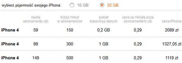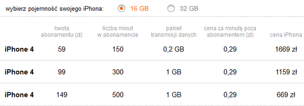 Na stronach Apple (Polska) znaleźć można informację, że iPhone 4 dostępny jest oficjalnie w salonach Orange i Era. Poniżej prezentujemy ceny urządzenia u poszczególnych operatorów: