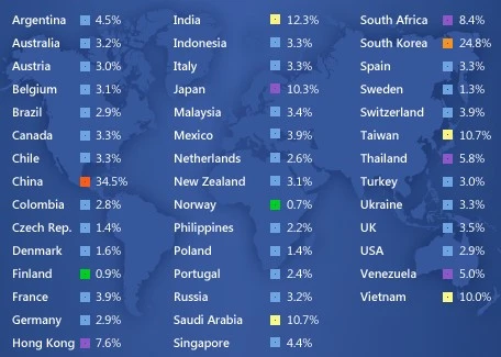 Internet Explorer 9 jest już blisko. Tymczasem „szóstka” jest wciąż bardzo popularna w Azji – i to w krajach bardzo rozwiniętych pod względem informatycznym. IE6 ma ponad 1/3 udziałów w Chinach, prawie ćwierć w Korei Południowej, 12% w Indiach i aż 10% w Japonii. Polska nie tylko na tym tle wypada dobrze. Z wynikiem 1,4% plasujemy się zaraz za krajami skandynawskimi, które jako jedyne na świecie mają mniejszy niż 1% odsetek IE6 na komputerach.